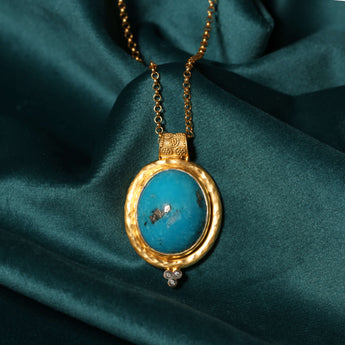 Three Diamond Turquoise Stone Necklace